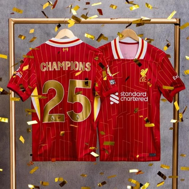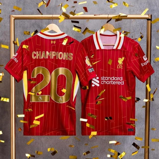 直播吧4月28日讯 为庆祝利物浦夺得2024-25赛季英超冠军,利物浦官方正式推出了冠军纪念系列商品。